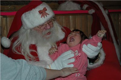 在排隊等聖誕老公公的禮物時, Felicia已經很想睡了, 又看到前面的Jonas哥哥一坐上聖誕老公公的腿上就開始哭, Felicia一上坐也是哭到不行, 媽咪安撫都沒用.
