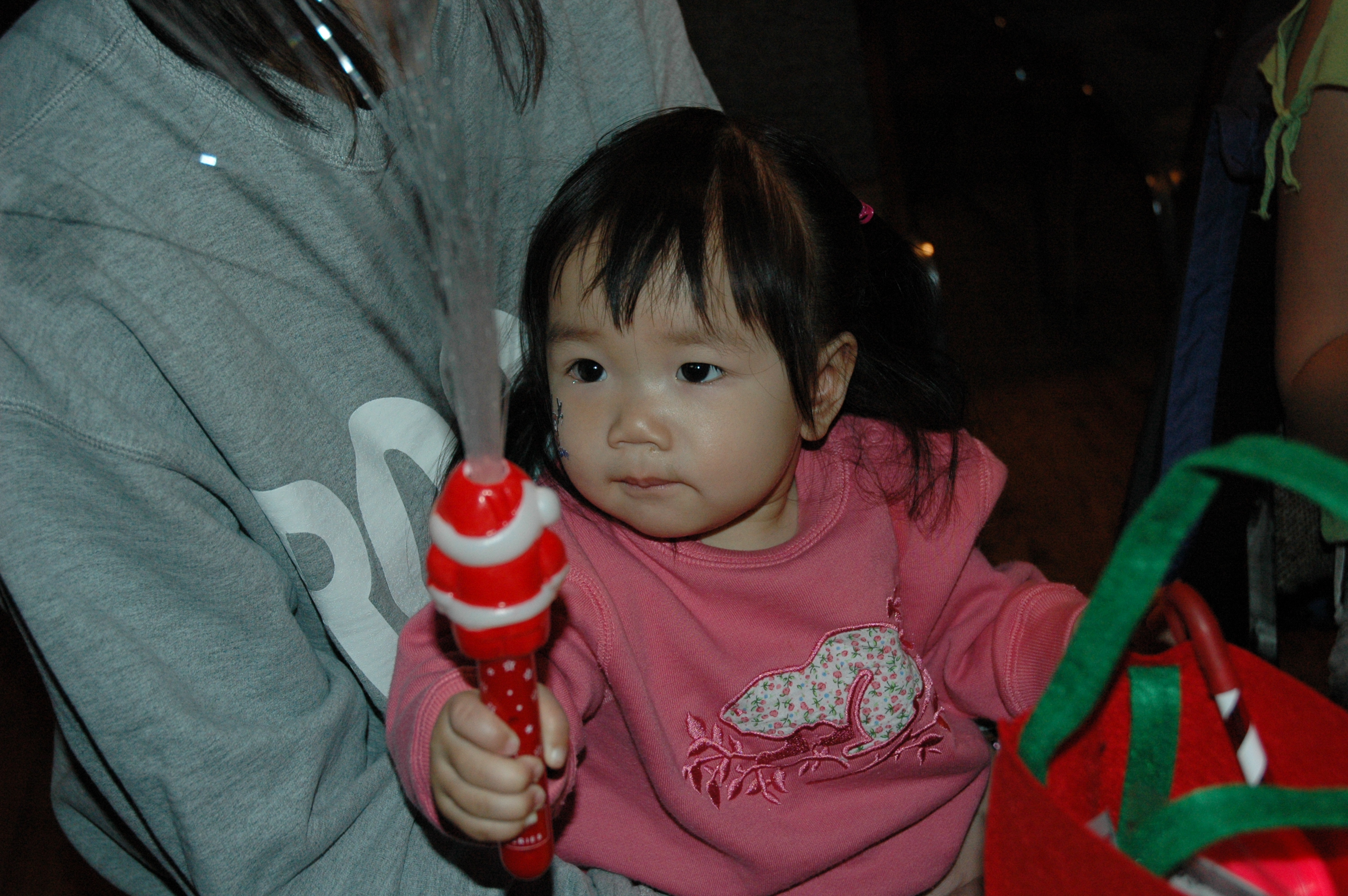 很奇怪的事, 剛才明明想睡才哭哭的, 為什麼一拿到禮物整個精神都來了, 一點都不累的樣子.