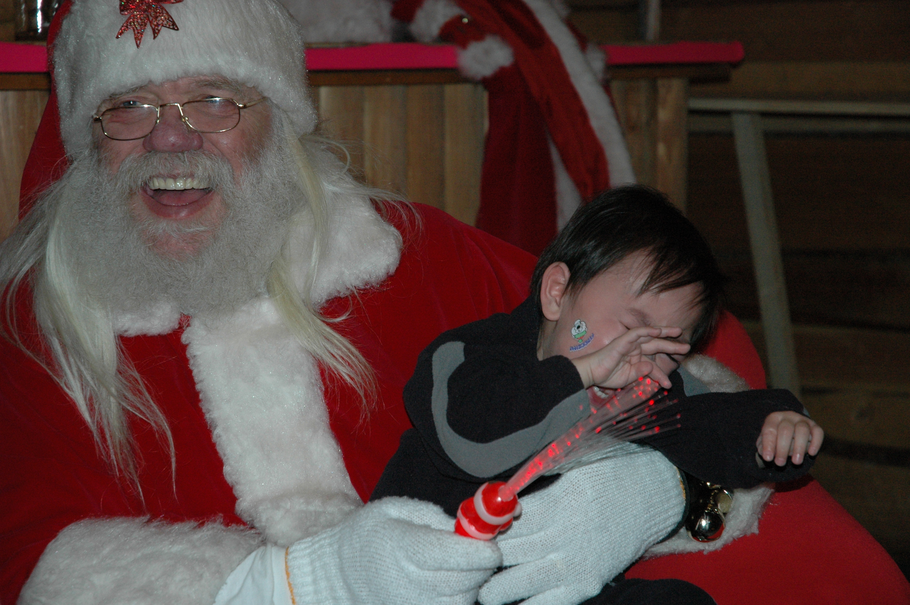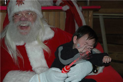 Jonas哥哥一坐上Santa的腿上, 就開始放聲大哭