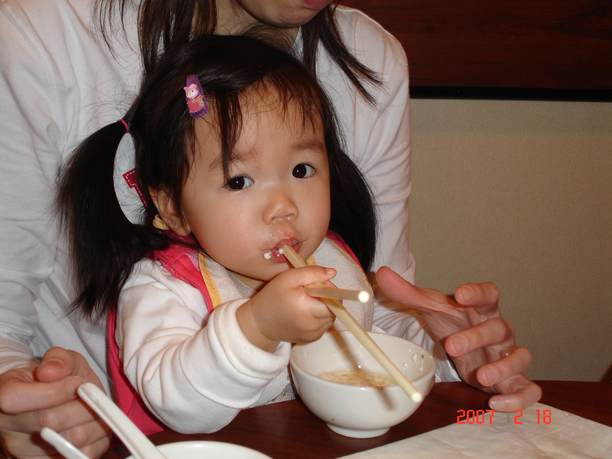 Felicia:「我就是要跟你們一樣用筷子吃飯飯嘛~」