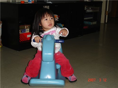 Felicia一直對會搖晃的東西有恐懼感, 剛騎上馬時, 發現會動, 就想下來了.