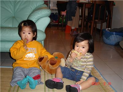 排排坐吃餅乾.