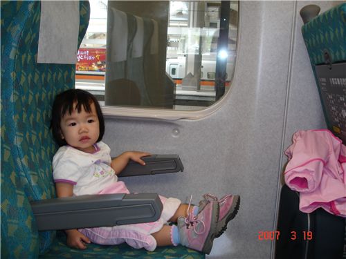 座位寬敞的高鐵, 放了手提行李箱, 腳還有很大的空間放.