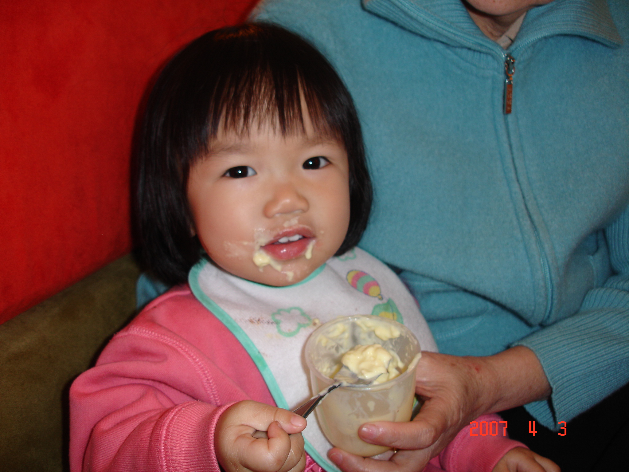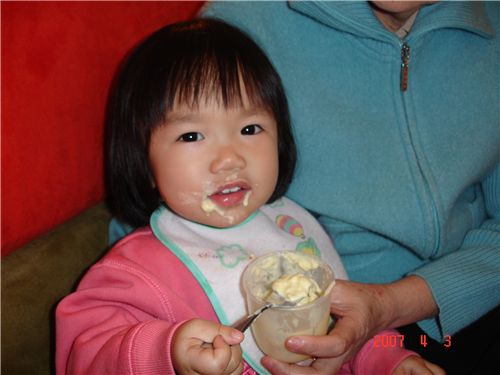 Felicia自己一人獨享一個大布丁, 很好吃唷.