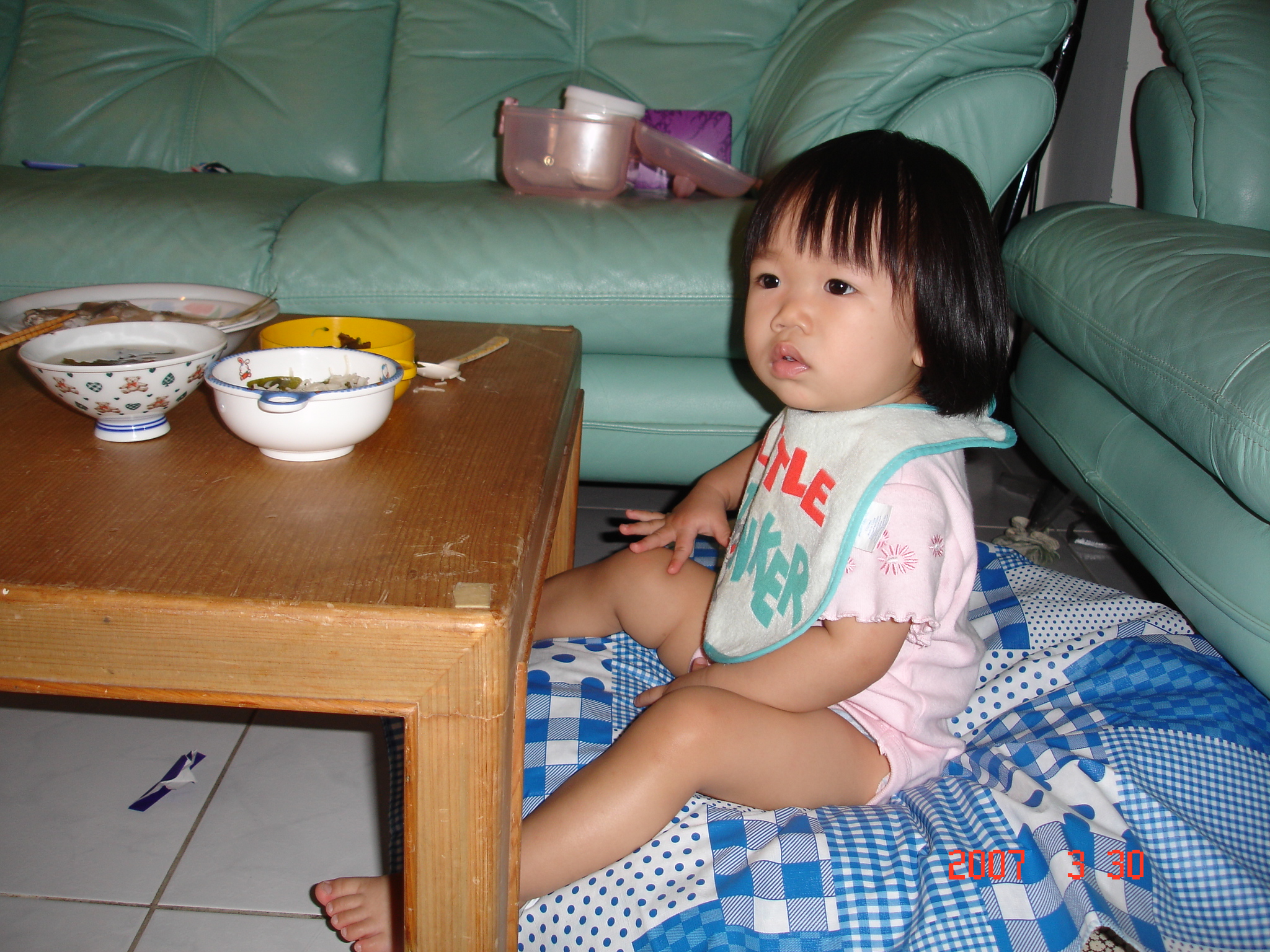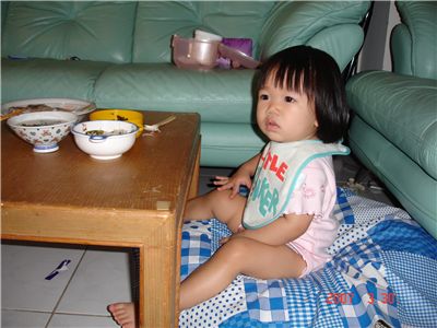 第二代的臨時餐桌, 墊了好幾個墊子才夠高.