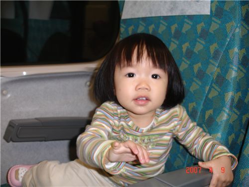 這是第四次搭高鐵了, 今天高雄到台南的路程, 整個車廂只有三個人耶, 我們一張票坐兩個位置到台中哦.