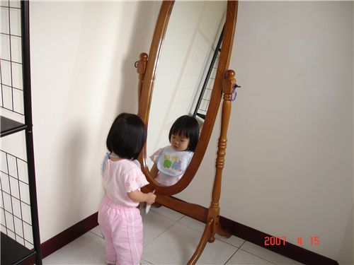 Felicia: 「鏡子抬高一點, 可以看到比較多自己耶.」