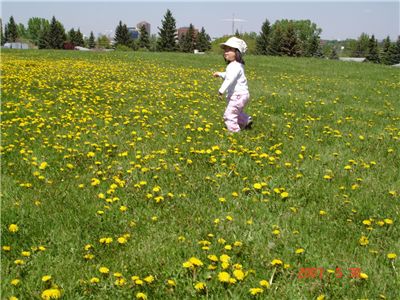 雖然只是從小黃花中走過去, 回來褲管都是黃色花粉