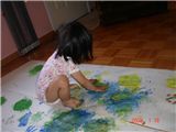 Felicia在家像猴子George一樣的畫畫