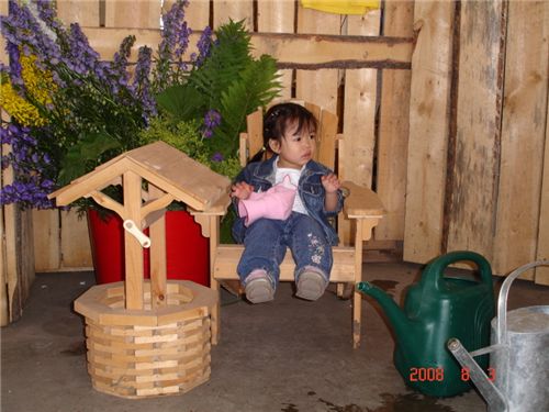 走完迷宮了, 坐在花園主人的小椅子上休息一下