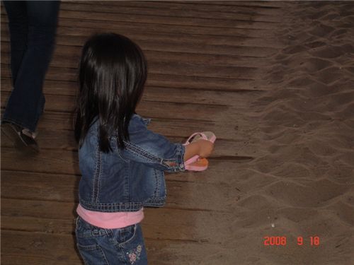 邊走還邊玩, 脫鞋就是她最好的工具