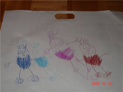我們的第一幅全家福畫由Felicia完成了, 把拔很興奮的說, 要把它裱框起來.