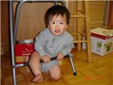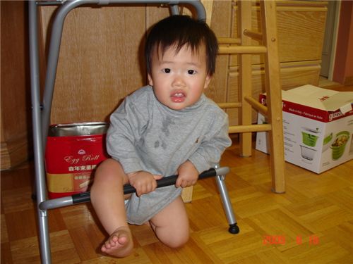沒事做的弟弟, 躲在一旁鑽椅子.