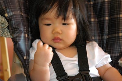 Felicia喜歡玩媽咪的手手, 所以媽咪也教她如何玩自己的手, 現在她會比數字1,5,0, 還會點點自己的手指頭數數