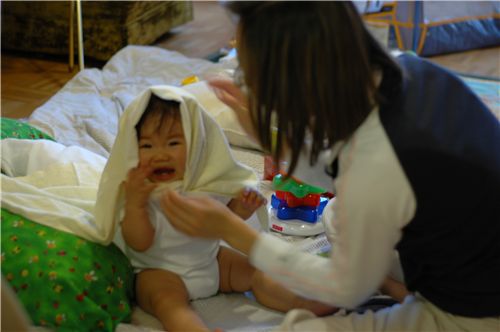 Kaori 幫 Felicia打扮成"忍者"的裝扮, 她說這是日本小朋友最喜歡的玩法之一