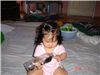 當Felicia搖樂器時, 很認真的看著黑豆的流動