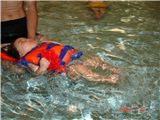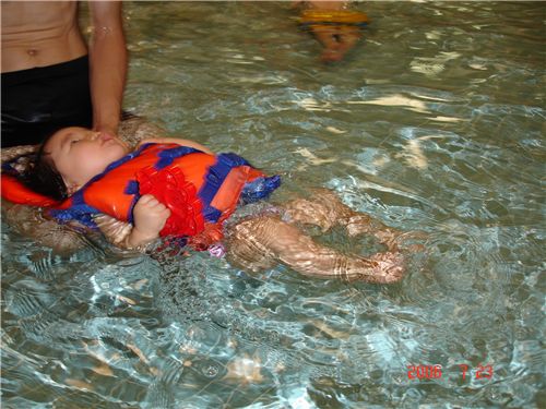 看看我的腳多有力, 我可以自己踢水前進耶.