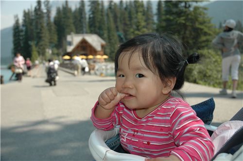 Felicia開始皮皮, 啃起大姆指來了.