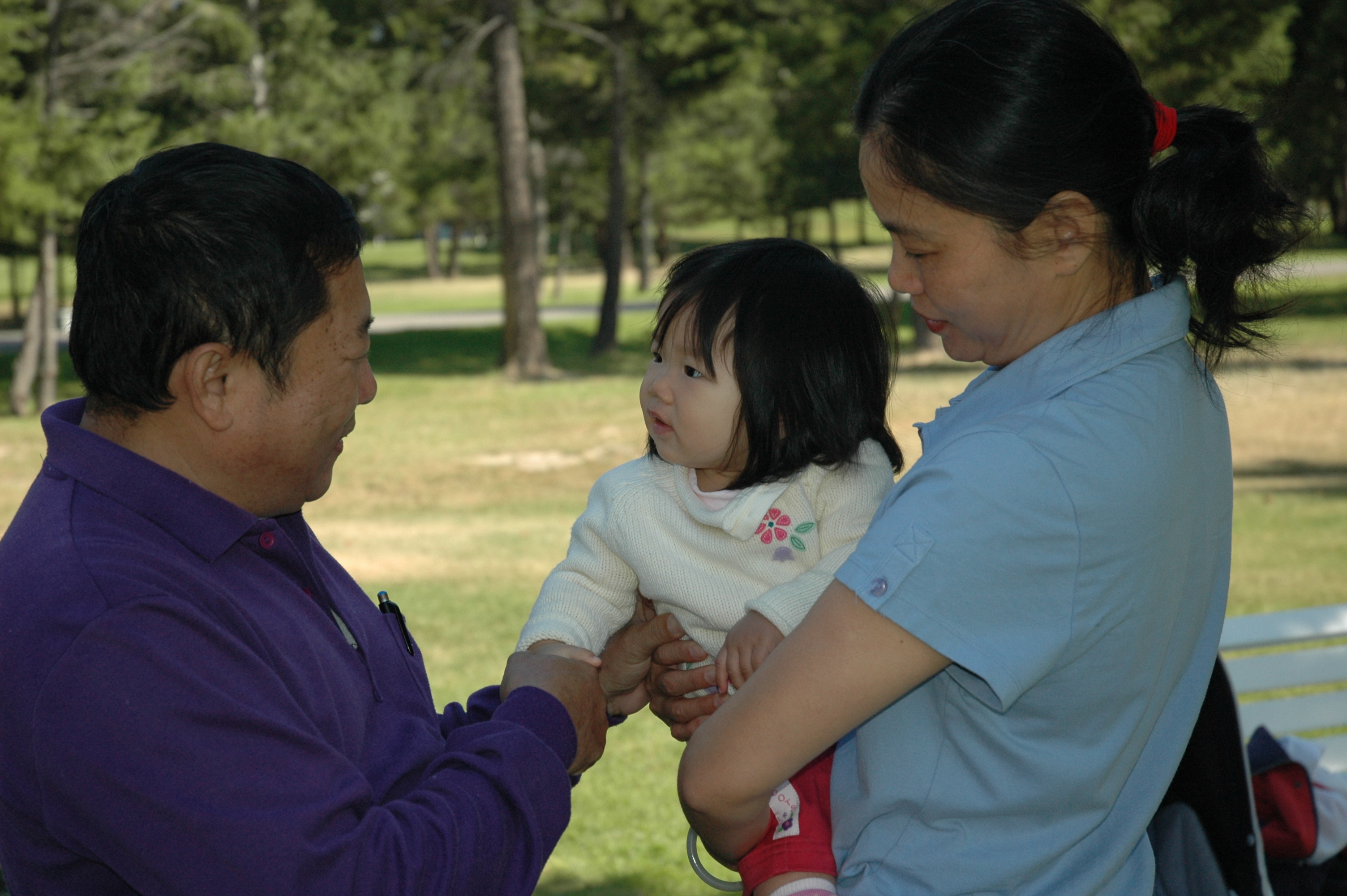 和梁爺爺梁奶奶玩耍, 在台灣的爺爺奶奶還沒機會和Felicia這樣玩呢, 他們看了可能會吃醋.