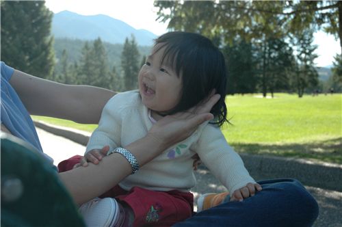 Felicia和梁奶奶玩的笑得很開心