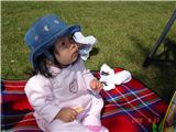 Felicia吃著手裡的蔬菜, 看著把拔手裡的三明治, 好想吃一口把拔的三明治哦.
