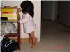 Felicia不夠高, 又對盒子裡的東西充滿好奇, 於是踮著腳尖一直在箱子裡挖寶