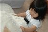 Felicia現在會和床下的大絨毛狗狗玩了, 先摸摸眼睛再摸摸鼻子...