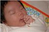楒庭: 手手好好吃耶, 為什麼媽咪不讓我吃呢?媽咪: 現在吃手手, 以後手指頭會變的很醜哦 ~ ~