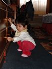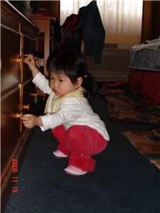 這是Felicia第二次在外面過夜, 媽咪在收行李, Felicia在一旁探索&搗蛋