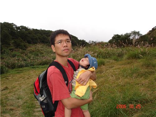 Felicia在擎天崗上睡的好熟哦, 風景沒看到, 還讓把拔抱了一整路.