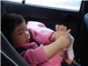 在車上, Felicia已經玩到沒有東西玩, 索性把襪子脫掉, 玩起穿襪子的遊戲, 雖然還不會穿, 不過所有的動作, 都已正確了.