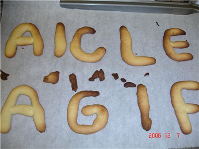 媽咪一,二年沒烤餅乾了, 不小心烤的太黑了, 中間的小黑點是Felicia做的餅乾.