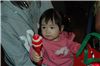 很奇怪的事, 剛才明明想睡才哭哭的, 為什麼一拿到禮物整個精神都來了, 一點都不累的樣子.