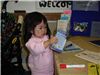 Felicia一進入CIWA, 看到小桌上有許多的廣告紙, 就自己在一旁玩了起來.