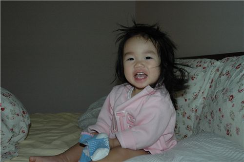 睡飽醒來, Felicia總是露出愉快的微笑.