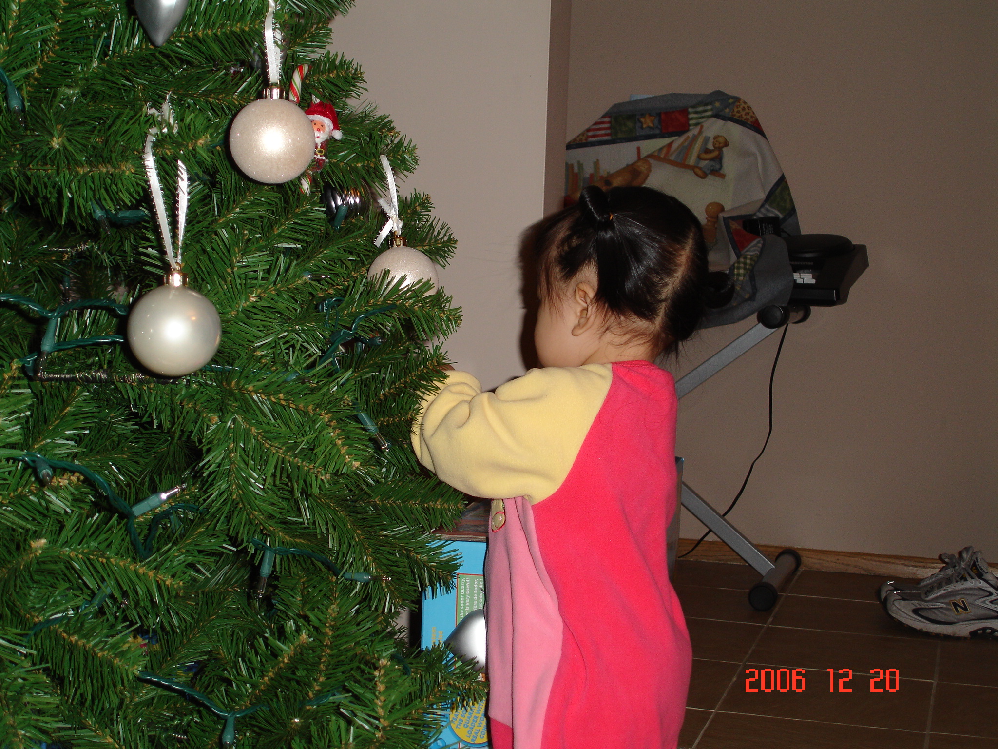 Felicia每天都在聖誕樹下巡視, 看看可以把那些球做任何新的安排.