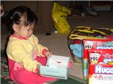 Felicia很喜歡玩紙盒, 她總是一個人靜靜的研究盒子打開跟合起來有什麼不一樣, 兩隻小手手在裡面進進出出, 當然有時也會把它給拆了.