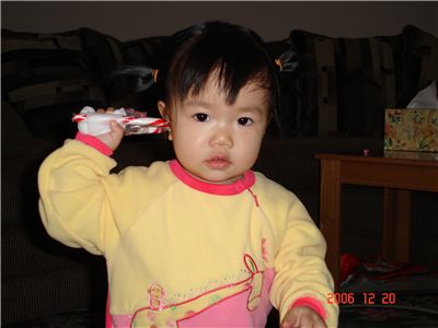 媽咪說拐杖糖還不能吃, 那麼打電話給聖誕老公公好了, 請他幫我準備禮物, 我會做個乖寶寶哦.