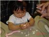 Felicia將把拔搓好的湯圓, 壓扁壓碎, 搞破壞.