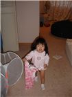 Felicia帶著小洋裝追著媽咪跑, 媽咪我不要長褲, 我要穿這件啦.