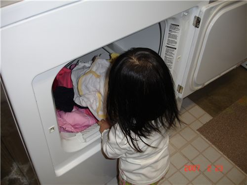 仔細的把剛放進去的衣服打開來.