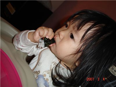 Felicia很喜歡紅色魚卵壽司, 媽咪特製的.