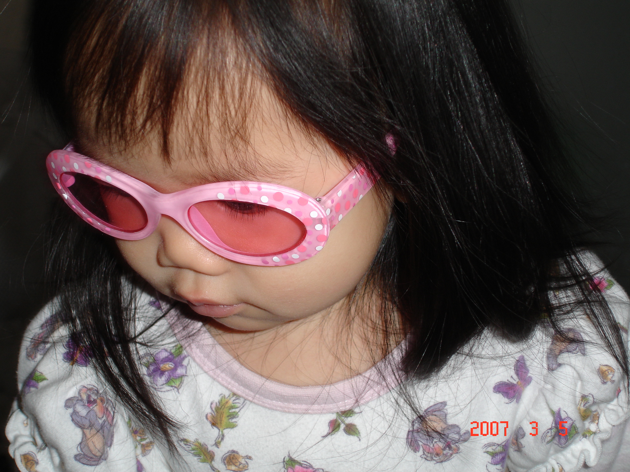 把拔買了太陽眼鏡給Felicia, 看看Felicia會不會從此不玩大人的眼鏡.