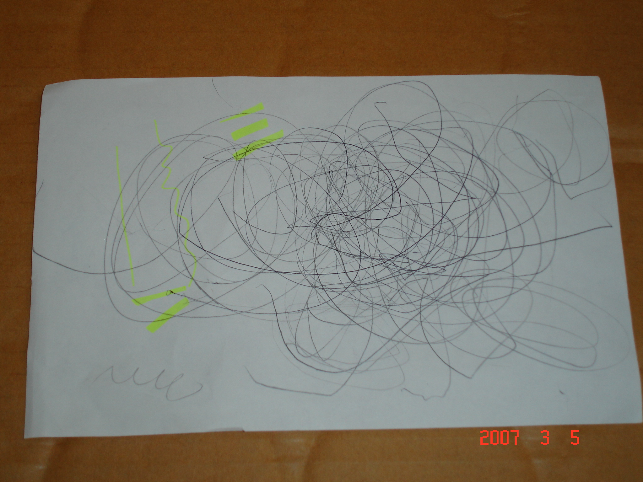 Felicia用黑色原子筆畫圈圈