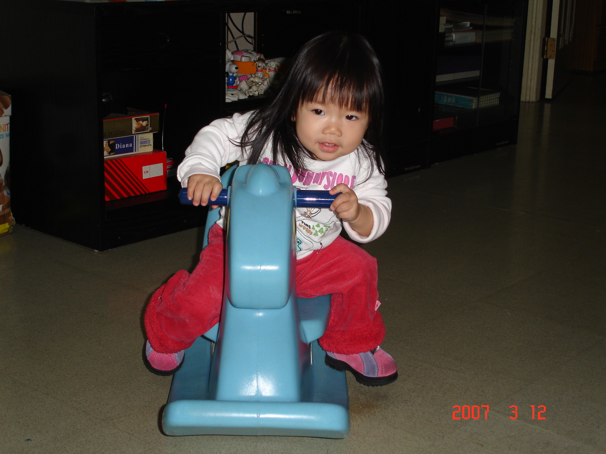 皮皮的Felicia騎木馬時, 擺pose的時間, 比搖晃的時間多些.
