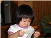 媽咪在收東西, Felicia 拿著把拔的電話簿在研究.