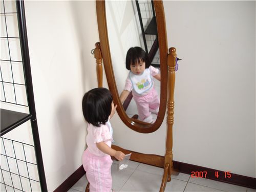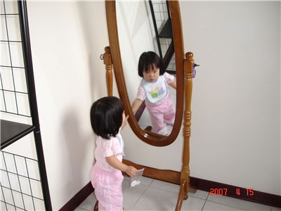 愛漂亮的女生, 愈來愈喜歡站在鏡子前面, 觀察自己, 也會跟鏡子裡的自己玩耍.