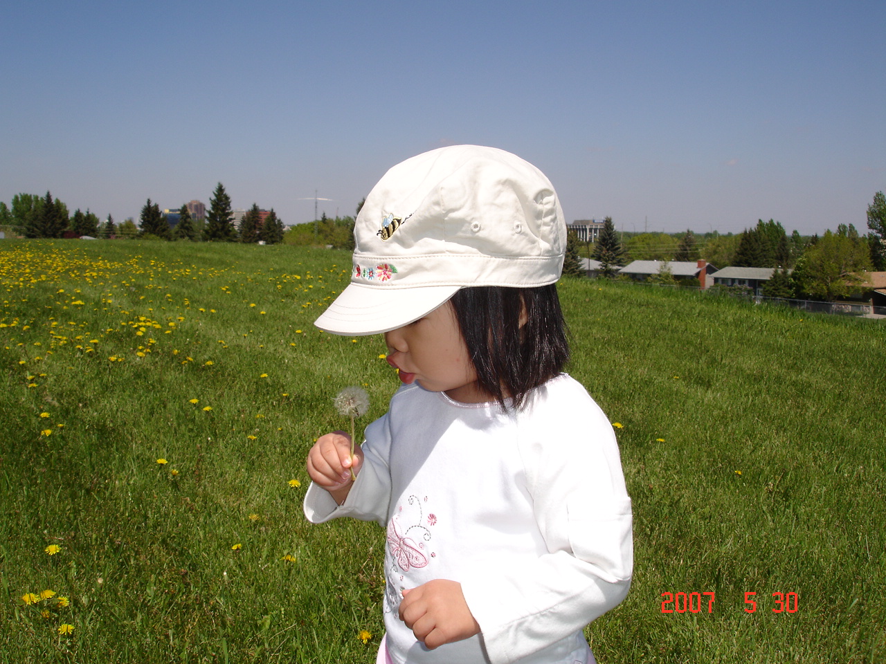 Felicia想把蒲公英的種子吹走...