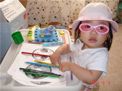 洗好澡, 等待去IKEA吃一元早餐, 先畫畫一下. 怎麼自己把帽帽眼鏡都戴好了呢.