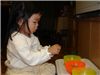 媽咪想要做米漿, 請Felicia幫忙撥花生皮. Felicia一邊撥一邊吃, 撥好後, 碗裡剩沒幾顆花生.